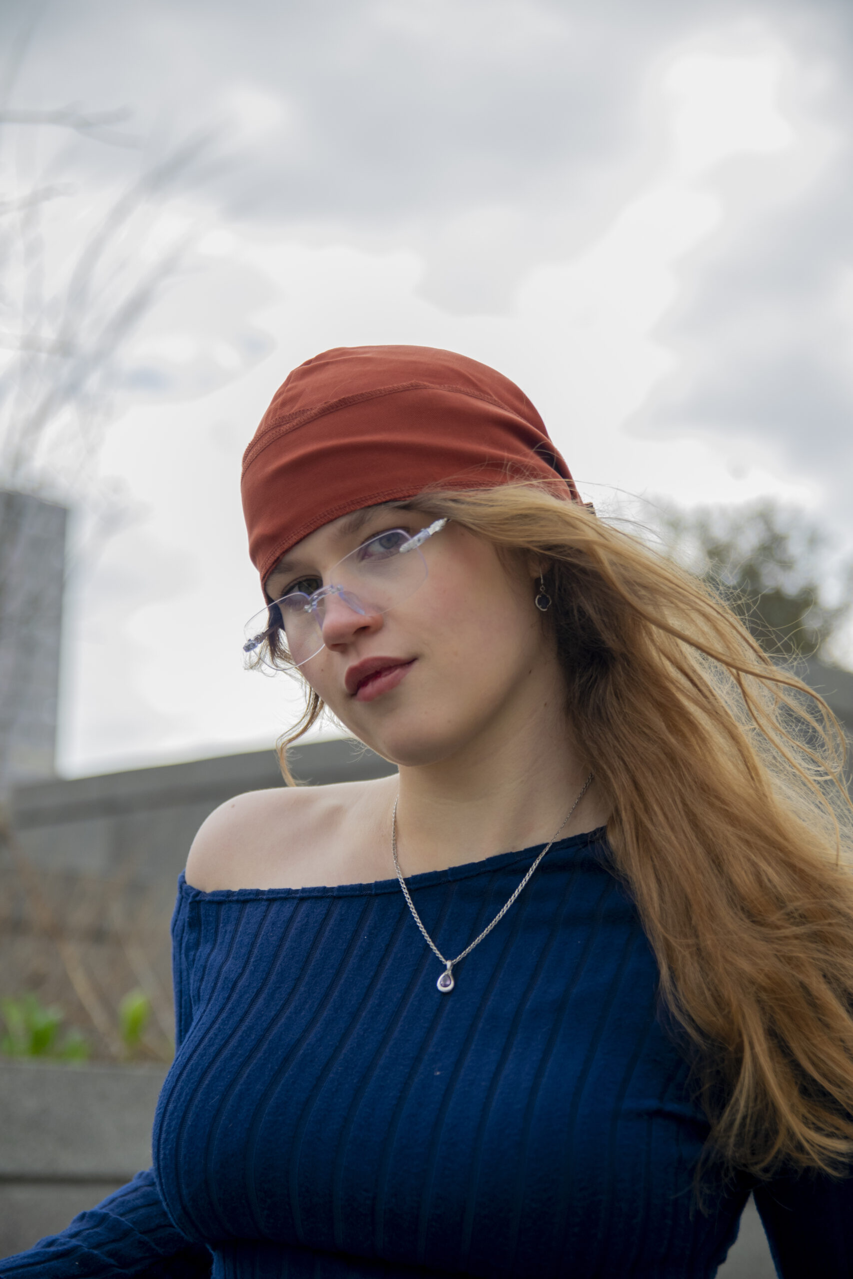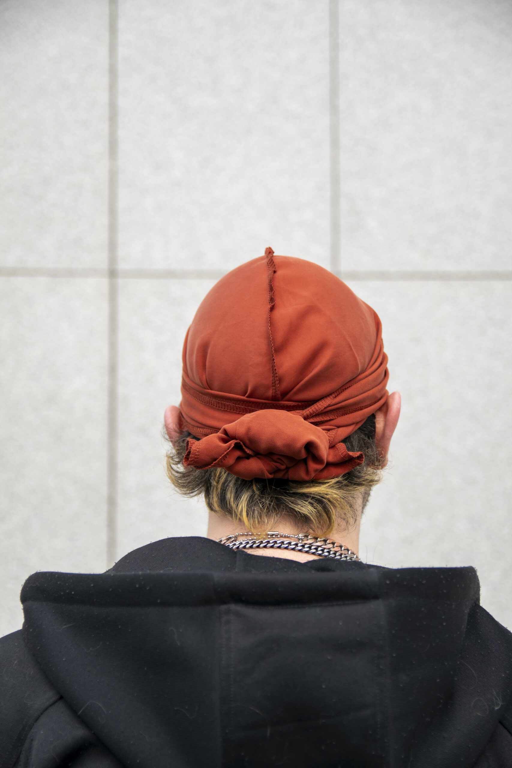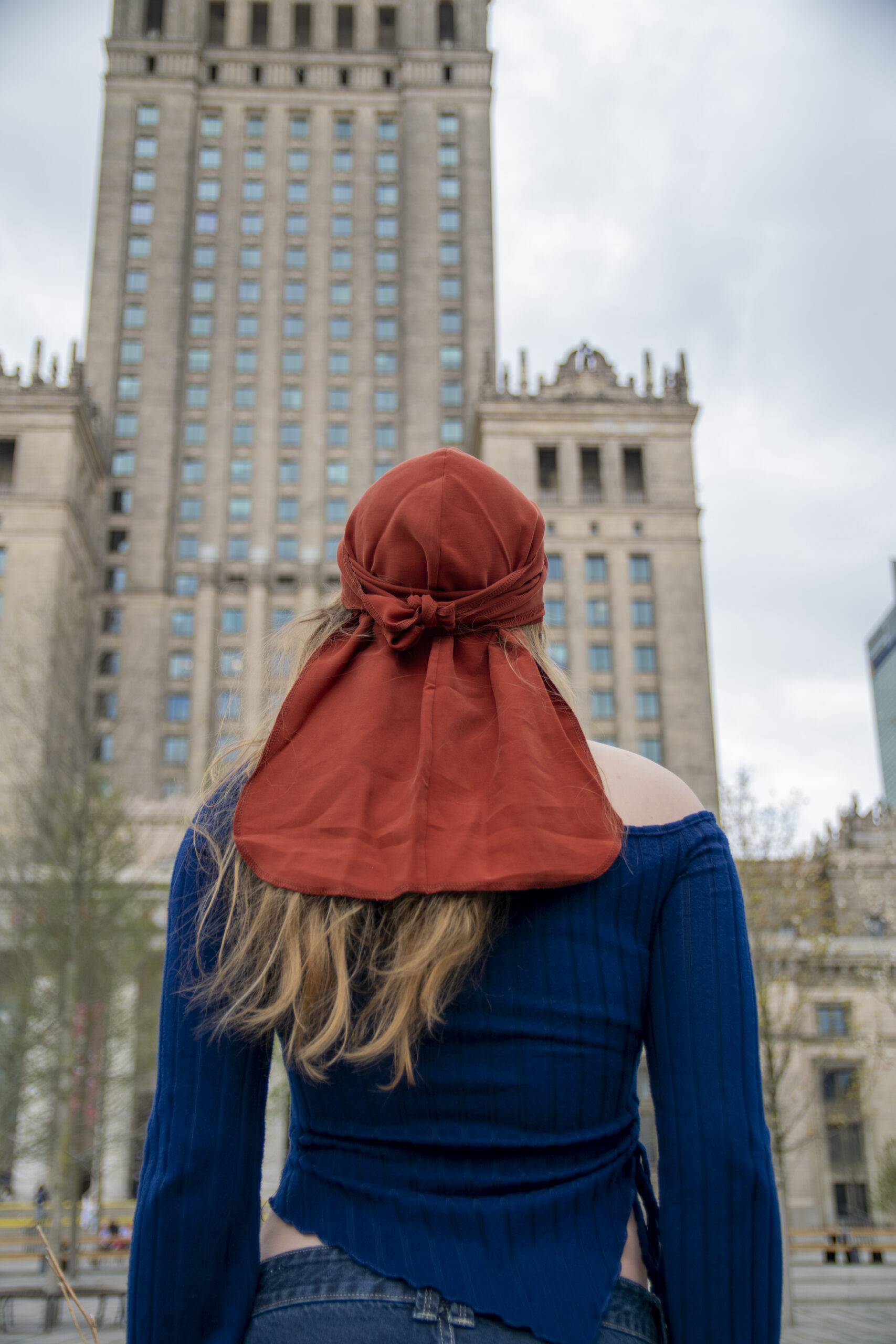 Durag wykonany z przygaszonego pomarańczowego materiału cupro
